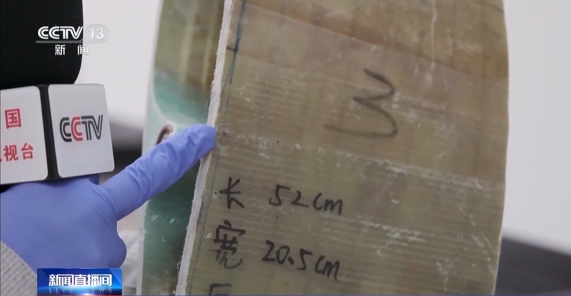 總臺央視記者 王顥一:這塊就是從風(fēng)機上切割下來的材料,這個黃顏色部分就是用可回收材料制成的,可以通過溫和的辦法得到這種玻纖,成為我們以后利用的基礎(chǔ)原料,可以成為電器開關(guān)、可以變成電器殼,還可以制成纖維頭盔,還可以回收成玻纖粒子,應(yīng)用在我們生活當中需要的產(chǎn)品中。