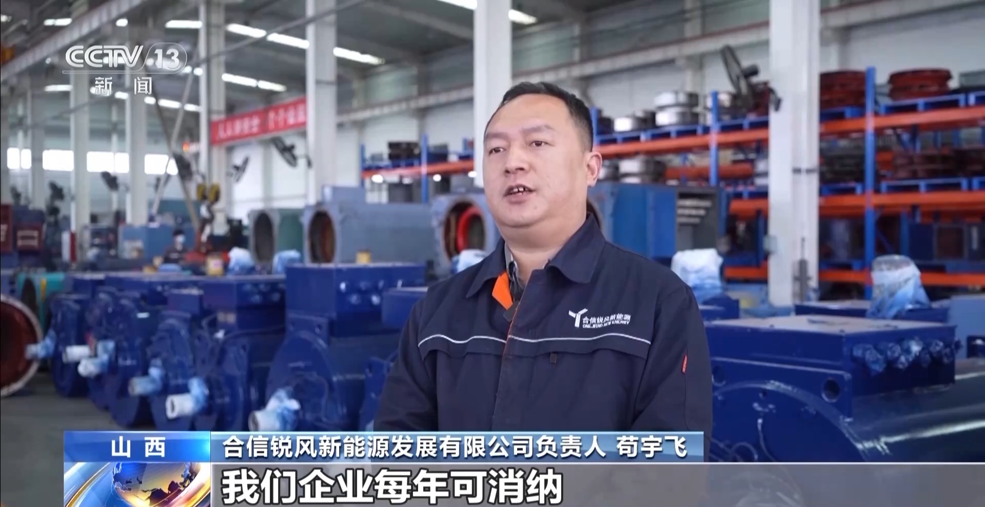 合信銳風(fēng)新能源發(fā)展有限公司負責(zé)人 茍宇飛:我們企業(yè)每年可消納退役各類型風(fēng)力發(fā)電機500余臺,通過風(fēng)力發(fā)電機的回收再制造利用,每年可節(jié)約3000余噸鋼材,400余噸銅材,每年可創(chuàng)造約18億度的綠色電能,可減少二氧化碳排放100余萬噸。