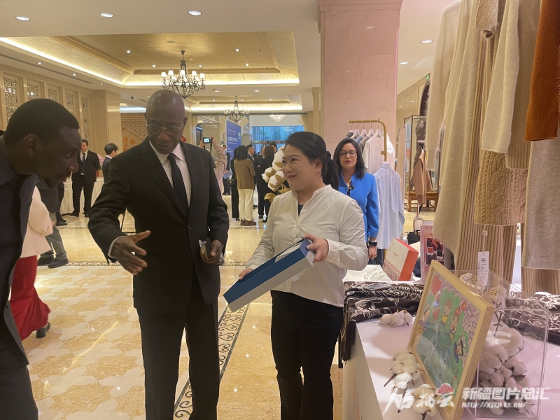 有關(guān)國家駐華使節(jié)對新疆特色產(chǎn)品展現(xiàn)出濃厚興趣。石榴云/新疆日報記者 劉翔攝