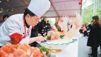 在四川南充舉辦的火鍋美食文化活動上,火鍋企業(yè)的大廚為觀眾呈現(xiàn)出一道道美食菜肴。余中華攝 中央經(jīng)濟工作會議提出,“擴大服務(wù)消費”。當(dāng)前,服務(wù)消費需求加速釋放,新場景新業(yè)態(tài)新模式不斷涌現(xiàn),供需“雙向奔赴”激發(fā)市場新活力。本版今起推出“服務(wù)消費一線探訪”系列報道,聚焦餐飲、健康、文創(chuàng)、住宿等重點領(lǐng)域,深入部分省份調(diào)研探訪,剖析服務(wù)市場供需新特點、新趨勢,探討擴大服務(wù)消費新舉措。 ——編 者 春熙路、寬窄巷子、錦里古街……成都街頭人來人往;回鍋肉、麻婆豆腐、宮保雞丁……川菜館中香氣四溢。川菜作為中國八大菜系之一,擁有悠久的歷史和豐富的文化內(nèi)涵。成都是川菜的發(fā)源地之一,被聯(lián)合國教科文組織評選為“世界美食之都”。 今年的《政府工作報告》將“大力提振消費、提高投資效益,全方位擴大國內(nèi)需求”放在十大任務(wù)之首。民以食為天,餐飲業(yè)是提振消費的一個重要抓手。以麻辣鮮香為特點的川菜,餐飲文化豐富多樣,融合傳統(tǒng)與創(chuàng)新,在新消費趨勢下發(fā)展迅速。早春時節(jié),記者來到成都大街小巷,探訪餐飲業(yè)如何增加優(yōu)質(zhì)供給,加快創(chuàng)新升級,滿足市場需求。 菜品創(chuàng)新,豐富川菜口味 起鍋燒油,倒肉末,至色呈黃,再加蒜末、豆豉炒香,緊接著下豆腐,文火收汁,加入蒜苗。在成都交子公園附近的一家川菜館內(nèi),總廚鄧偉動作行云流水。他邊調(diào)整火候邊說:“起鍋時,還得撒點花椒,本地產(chǎn)的,這可是麻婆豆腐‘麻’味的精華!” 郫縣豆瓣、漢源花椒、安格斯牛肉,看似簡單的一道麻婆豆腐,實則頗有講究,盡顯川菜百味。在鄧偉看來,既要堅守傳統(tǒng)川菜風(fēng)味,又要結(jié)合時代變遷和人們口味的變化,不斷守正創(chuàng)新,“春吃芽,夏吃瓜,秋吃果,冬吃根。川菜有魚香、麻辣、姜汁等24種味型,我們在創(chuàng)新菜品時,會精選食材,反復(fù)試味?!?/p> 怪味牛小排,麻辣鮮香甜,煎制后的牛肉一口咬下,汁水四溢。“傳統(tǒng)川菜中的怪味,一般多用于涼菜,我們則創(chuàng)新到熱菜上使用,從選取食材到烹飪手法,多次試驗?!编噦フf,反復(fù)調(diào)整了10多天,這才制成怪味牛小排,新菜一經(jīng)推出,就獲得好評。陳釀豆瓣銀鱈魚、糯米樟茶鴨……在他手中,傳統(tǒng)川菜有了更多創(chuàng)意。 記者走進另一家位于成都錦江區(qū)水井坊的川菜店,熊貓文創(chuàng)小吃展臺映入眼簾,熊貓造型的點心各式各樣,軟糯可愛。傍晚6點,從馬來西亞來成都旅游的一家人特意趕來,打卡地道川菜。餐前,弟弟杰克第一時間把拍攝的糖油果子短視頻發(fā)到社交媒體,分享給網(wǎng)友。而熊貓造型的甜點“天府鮮果熊貓”,讓杰克“心都化了”,留到最后才舍得吃。 “春天,我們制作熊貓青團,餡料選的是宜賓產(chǎn)的芽菜。夏季,鮮果熊貓的食材就用來自龍泉驛的水蜜桃,到了秋天,攀枝花的芒果必不可少?!痹撻T店負責(zé)人許凡介紹,除深耕傳統(tǒng)川菜外,他們還創(chuàng)新菜品,熊貓造型的文創(chuàng)小吃吸引不少游客,讓游客們既能打卡熊貓文創(chuàng),又能品嘗川菜。 近年來,川菜頻頻出圈,以調(diào)味多變、菜式多樣俘獲了眾多美食愛好者的心,紛紛趕來成都體驗。當(dāng)下,成都正深入挖掘川菜發(fā)展新模式,以川菜吸引更多人前來生活旅游,通過“傳承+創(chuàng)新”提升川菜吸引力。 “通過加強美食品牌培育,全市有20家餐廳上榜‘2025黑珍珠餐廳指南’,73家餐廳上榜‘2025成都米其林指南’?!背啥际猩虅?wù)局相關(guān)負責(zé)人介紹,老字號也得守正創(chuàng)新,目前成都共有四川老字號67個,中華老字號23個,涵蓋了飲食、川調(diào)等多個品類。成都餐飲消費提質(zhì)擴容,國際美食之都的“金字招牌”越擦越亮,2024年,成都餐飲收入1933.7億元,同比增長6.2%。 “川菜一直在融合發(fā)展的路上,人口流動推動生活方式、飲食文化的融合,川菜通過融合更有生命力。要提振川菜消費,還要繼續(xù)推動川菜融合創(chuàng)新?!敝袊埖陞f(xié)會名廚專業(yè)委員會常務(wù)副主席、川菜文化全球推廣大使邱克洪說,“川菜烹飪技法和味型比較豐富。交通閉塞的時候,川菜食材相對匱乏,現(xiàn)在我們把各地新食材引入川菜,給消費者提供不同的舌尖體驗。” 豐富場景,改善消費體驗 每到3月,賞花是不少市民游客的“固定節(jié)目”。春花爛漫,美食正鮮,在成都崇州隆興鎮(zhèn)梁景村,一頂頂白色帳篷散落在黃燦燦的油菜花海中。遠處藍天白云,近處油菜花金黃。花田間,火紅的鍋底沸騰,毛肚、蝦滑、牛肉一股腦兒放進鍋中,火鍋的辛香和著花海的芬芳瞬間撲鼻而來。 “全村有1400多畝油菜花田,每年一到3月份,來觀賞油菜花的游客就多了起來,周末村里一天能接待好幾萬人?!绷壕按妩h委書記張建軍說,“游客在我們這兒,除了能把春天收藏在相冊中,還能把春天煮進火鍋里。村里聯(lián)合企業(yè)推出花田火鍋,創(chuàng)新消費場景,豐富消費體驗?!?/p> “每年3月都是旺季,大家喜歡在花田里感受自然風(fēng)光,我們就把火鍋和賞花結(jié)合了起來?!碧諠橇壕按寤ㄌ锘疱伒呢撠?zé)人,“我們的花田火鍋需要提前三天甚至一周預(yù)訂,平均每天能有40多桌,很多都是一大家