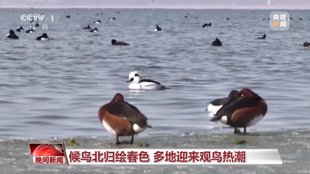 眼下,三萬多只候鳥在吉林查干湖國家級自然保護區(qū)覓食棲息,攝影愛好者也背著“長槍短炮”前來赴約。隨著觀鳥人數(shù)的不斷增加,當?shù)氐牟惋嫼兔袼拗饾u紅火起來,到查干湖觀鳥品魚,成為游客踏春出游的新選擇。