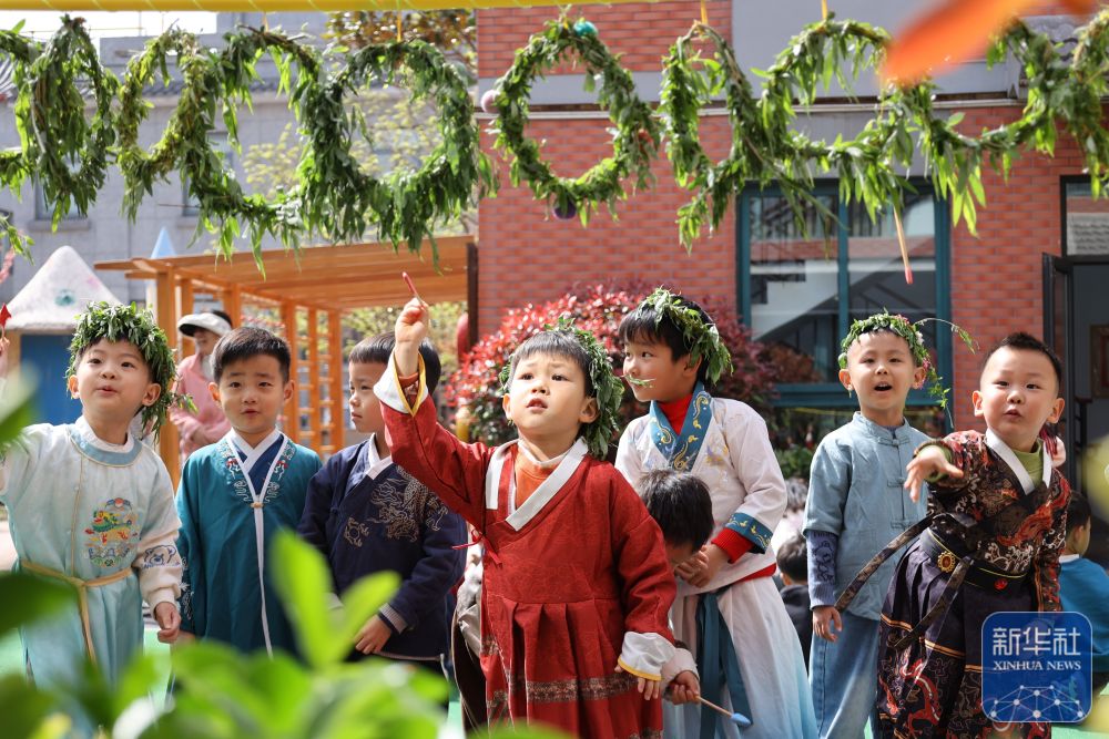 ↑ 4月3日,河南省開封市新街口幼兒園的小朋友在體驗(yàn)射柳。新華社發(fā)(石斐攝)