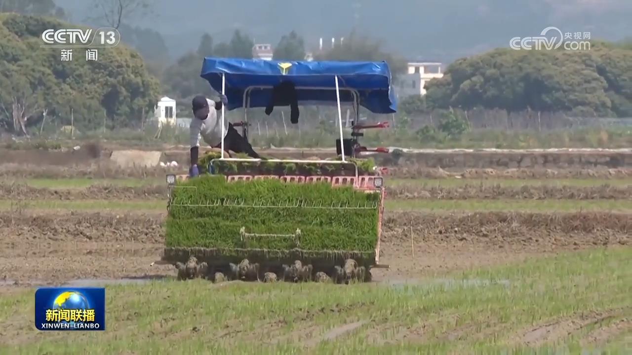 南方早稻生產(chǎn)有序展開。在安徽,早稻、再生稻進(jìn)入全面育秧階段,一個個自動化育秧工廠里,智能化育秧把出苗時間縮短了10天左右,每畝還能增產(chǎn)10%—15%。福建今年投入19.4萬臺(套)現(xiàn)代化農(nóng)機(jī)裝備,包括智能化育秧設(shè)備、北斗輔助駕駛系統(tǒng)、農(nóng)用無人機(jī)等,為全省超141萬畝早稻種植提供智能服務(wù)。廣東1300多萬畝早稻插秧已經(jīng)過半。今年廣東推廣了24個優(yōu)質(zhì)高效水稻新品種,15項先進(jìn)水稻種植技術(shù),助力水稻育秧播種。