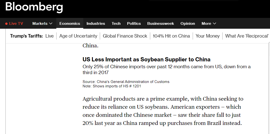 報(bào)道稱(chēng),美國(guó)作為中國(guó)大豆供應(yīng)商的重要性下降進(jìn)一步凸顯了中國(guó)的戰(zhàn)略調(diào)整。據(jù)中國(guó)海關(guān)總署數(shù)據(jù),過(guò)去12個(gè)月,中國(guó)僅25%的進(jìn)口大豆來(lái)自美國(guó),美國(guó)在中國(guó)大豆進(jìn)口市場(chǎng)份額進(jìn)一步收縮。這為北京爭(zhēng)取更多時(shí)間,直至雙方重回談判桌。
