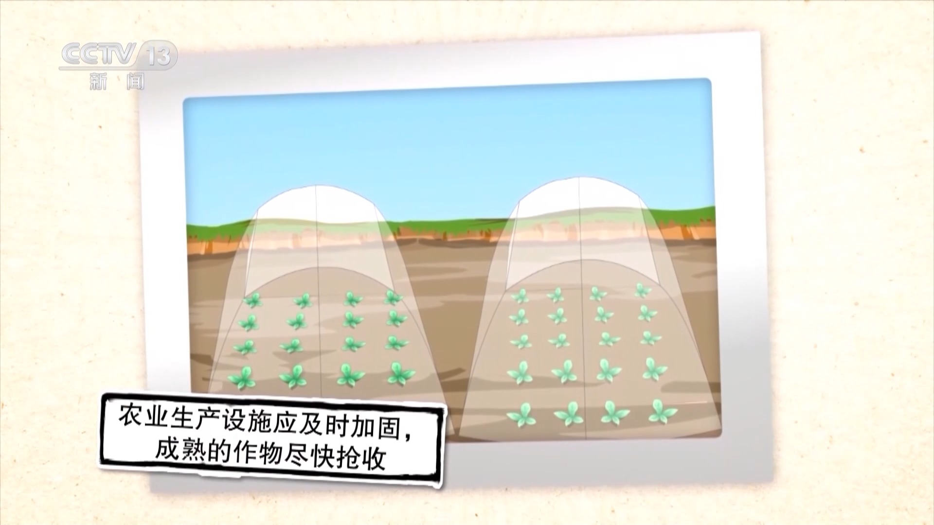 農(nóng)業(yè)生產(chǎn)設(shè)施應(yīng)及時(shí)加固,成熟的作物盡快搶收。