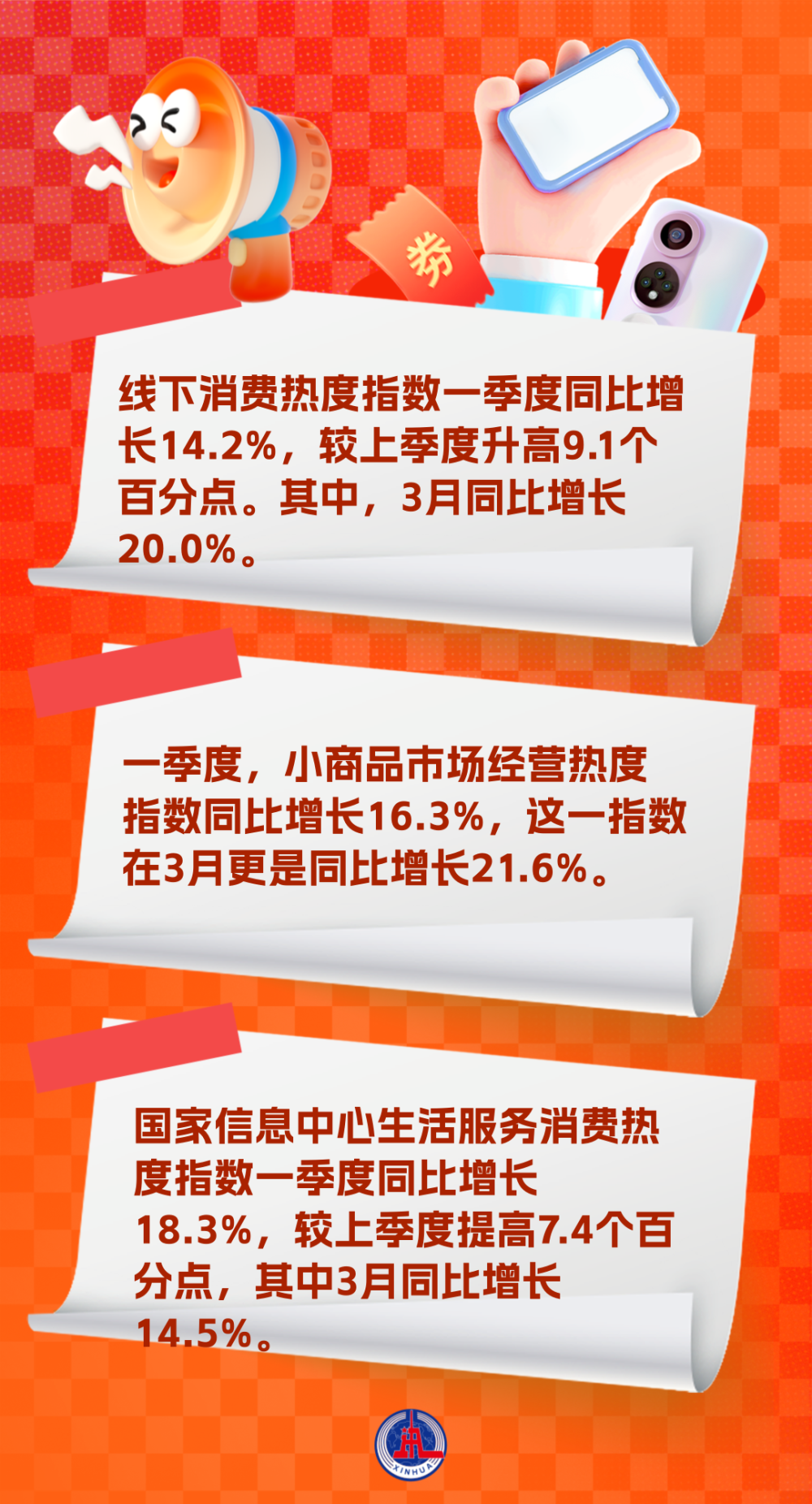 數(shù)據(jù)顯示,一季度,我國消費(fèi)市場亮點(diǎn)紛呈,呈現(xiàn)向好態(tài)勢。從線下消費(fèi)來看,國家信息中心線下消費(fèi)熱度指數(shù)一季度同比增長14.2%,較上季度升高9.1個(gè)百分點(diǎn)。其中,3月同比增長20.0%,比前兩個(gè)月高出4.7個(gè)百分點(diǎn),增速持續(xù)攀升。