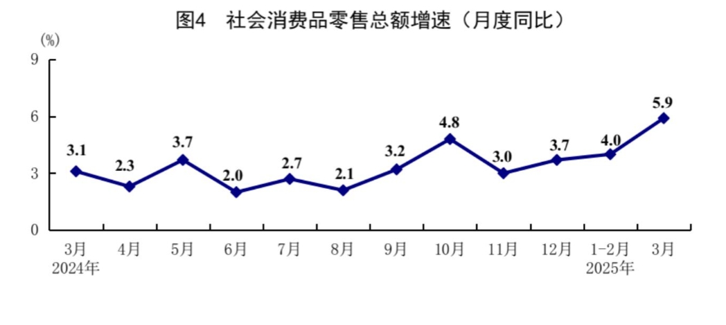 去年9月26日,中央政治局會(huì)議果斷部署了一攬子增量政策,對穩(wěn)定經(jīng)濟(jì)發(fā)揮了關(guān)鍵作用。今年我國宏觀政策更加積極有為,前期出臺(tái)的宏觀政策和持續(xù)擴(kuò)容加碼的增量政策疊加發(fā)力,有效擴(kuò)大了需求、促進(jìn)了生產(chǎn)、激發(fā)了活力、增強(qiáng)了信心。3月份,社會(huì)消費(fèi)品零售總額同比增長5.9%,增速創(chuàng)一年來新高。