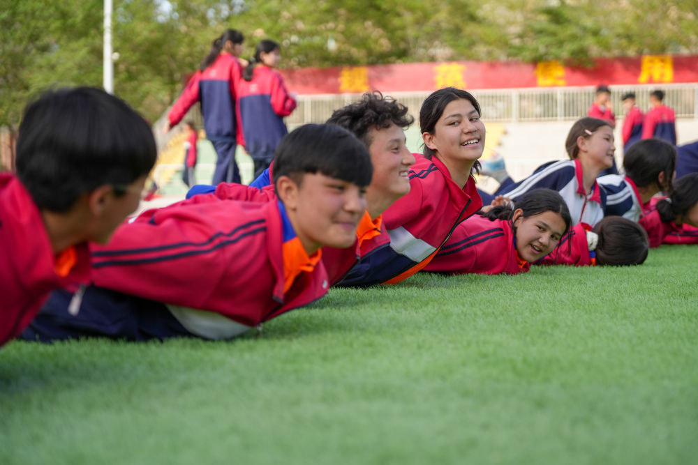 ↑4月10日,在阿圖什市硝魯克中學(xué),隊(duì)員們?cè)谶M(jìn)行訓(xùn)練。新華社記者 徐宏巖 攝