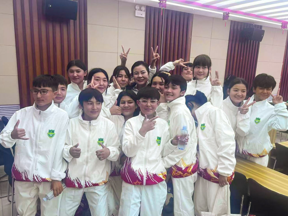 孫雯來(lái)到克州觀看她們的比賽并與大家合影