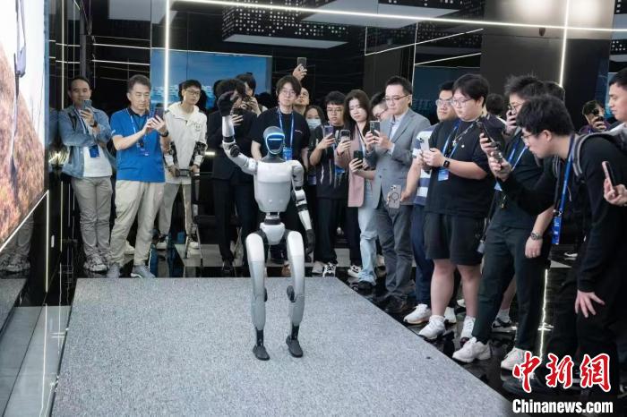 4月18日,港澳青年在杭州高新區(qū)(濱江)展廳觀看宇樹機(jī)器人表演。 吳君毅 攝