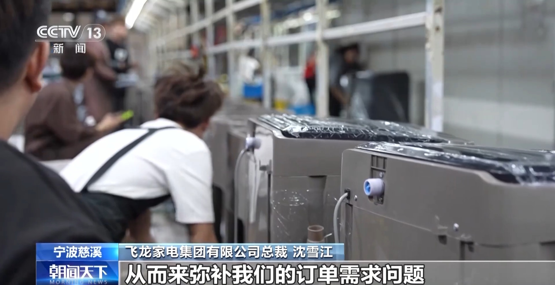 飛龍家電集團(tuán)有限公司總裁 沈雪江:比如說以前我們低于20柜(標(biāo)準(zhǔn)集裝箱),我們一般不會接,現(xiàn)在可能10個柜的訂單、8個柜的訂單,我們也能接一部分,從而彌補(bǔ)我們的訂單需求問題。