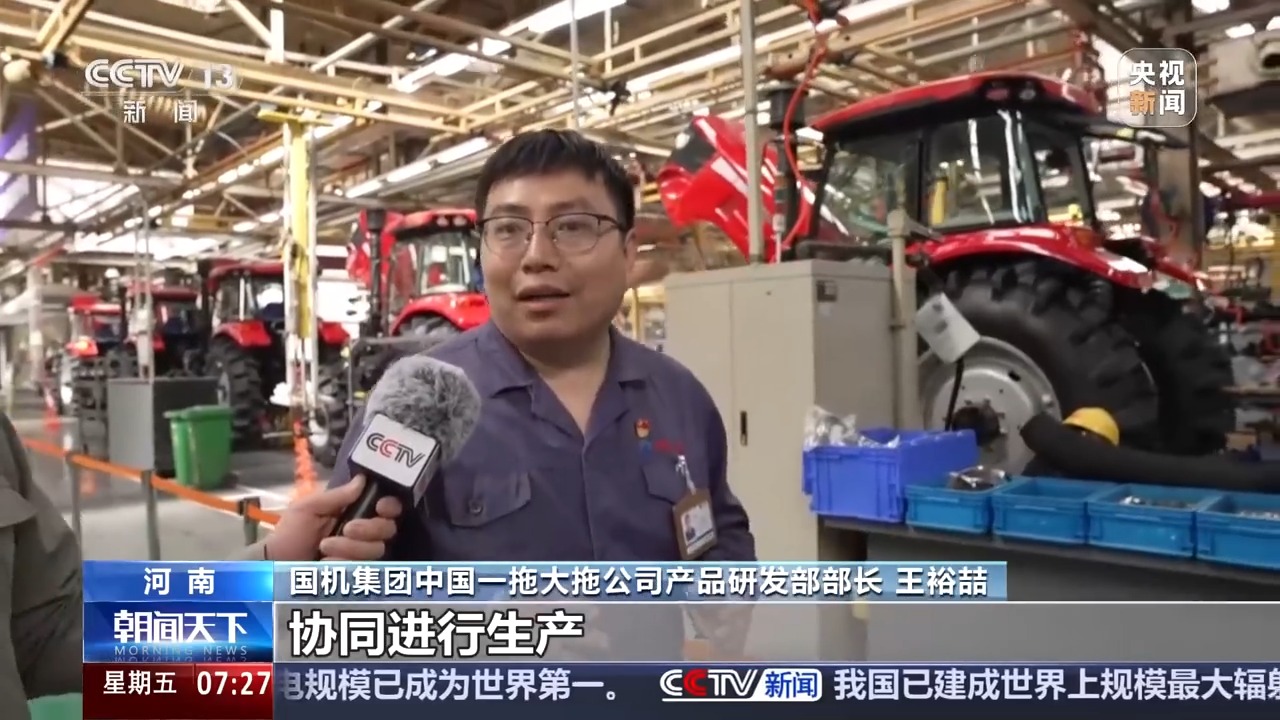 國機(jī)集團(tuán)中國一拖大拖公司產(chǎn)品研發(fā)部部長 王裕喆:協(xié)同進(jìn)行生產(chǎn),中間是通過智能化信息系統(tǒng),來進(jìn)行一個(gè)高效的協(xié)同和串聯(lián),也是通過這個(gè)信息系統(tǒng),實(shí)際上消除了各生產(chǎn)線之間的獨(dú)鏈和孤島。
