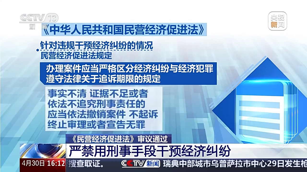 全國人大常委會法工委經(jīng)濟(jì)法室主任 楊合慶:強(qiáng)化行政執(zhí)法監(jiān)督,堅(jiān)決遏制“亂收費(fèi)、亂罰款、亂檢查、亂查封”等行為,對高效便利辦理涉企事項(xiàng)、完善人才激勵政策、健全信用修復(fù)制度、健全糾紛多元化解機(jī)制、發(fā)揮行業(yè)協(xié)會商會作用、加強(qiáng)海外綜合服務(wù)和權(quán)益保護(hù)等作出規(guī)定。