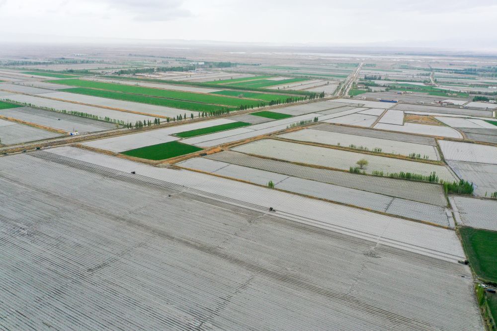 在新疆巴音郭楞蒙古自治州焉耆回族自治縣四十里城子鎮(zhèn),農(nóng)戶檢查栽苗效果(4月26日攝)。新華社記者丁磊 攝