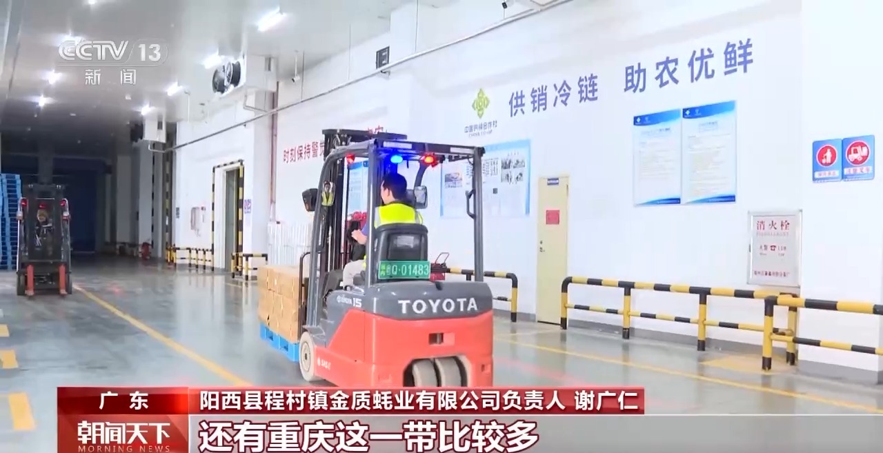 陽(yáng)西縣程村鎮(zhèn)金質(zhì)蠔業(yè)有限公司負(fù)責(zé)人 謝廣仁:現(xiàn)在我們很多生蠔是通過冷鏈車,全程冷鏈運(yùn)輸?shù)?。我們現(xiàn)在和供銷社會(huì)達(dá)成一個(gè)深度合作,我們的貨通過供銷的冷鏈網(wǎng)絡(luò)運(yùn)輸出去,速度會(huì)更快。