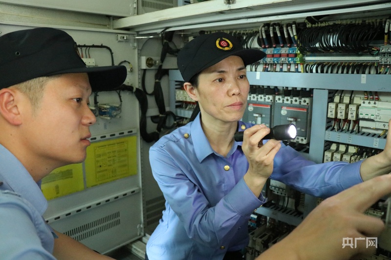 吳園梅和徒弟正在檢修車(chē)輛(央廣網(wǎng)記者 劉培俊 攝)