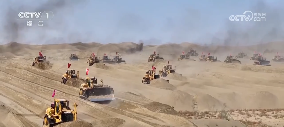 在位于塔克拉瑪干沙漠南緣的新疆昆玉市,7.38萬畝土地開發(fā)建設(shè)項目進入攻堅階段。上百臺裝載機、平地機在沙海中來回奔忙,原本丘壑縱橫的流動沙丘經(jīng)過連續(xù)作業(yè),逐漸變得平整,顯露出田壟的輪廓。