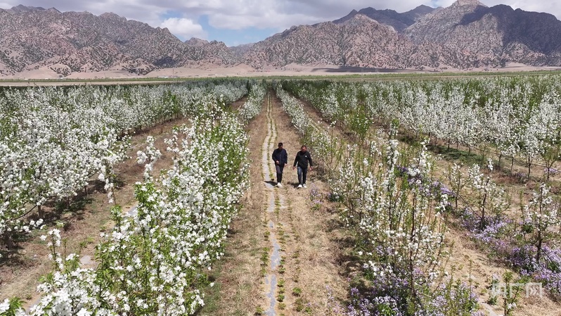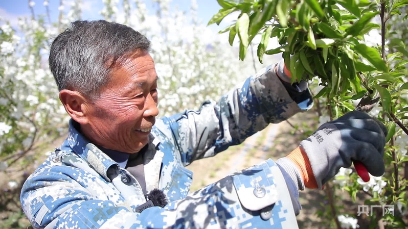 步入內(nèi)蒙古巴彥淖爾市烏拉特前旗白彥花鎮(zhèn)塔漢其嘎查林果產(chǎn)業(yè)園,大片果樹(shù)迎來(lái)最美花期,微風(fēng)拂過(guò),花香沁人心脾,果園里村民高忠標(biāo)正專注地修剪著果樹(shù)?!拔医衲?0多歲了,在這里打工五六年了,一個(gè)月能掙五六千塊錢(qián),挺好的?!?/p>