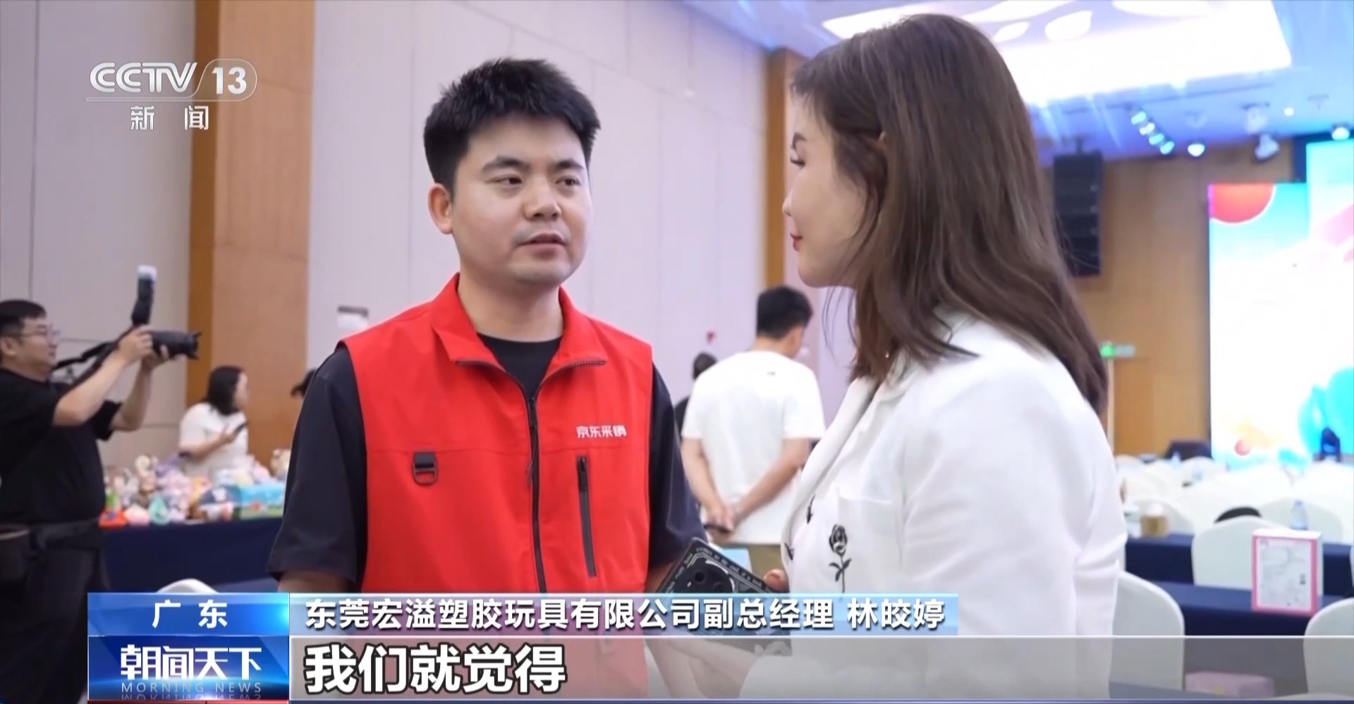 東莞宏溢塑膠玩具有限公司副總經(jīng)理 林皎婷:我們公司一直都是銷(xiāo)往美國(guó)為多,銷(xiāo)往美國(guó)的營(yíng)業(yè)額已經(jīng)占了50%或以上,一直沒(méi)有做過(guò)內(nèi)銷(xiāo)。我們覺(jué)得我們可以借這個(gè)平臺(tái)跟京東對(duì)接完以后,看怎樣帶領(lǐng)我們做內(nèi)銷(xiāo),把國(guó)內(nèi)的市場(chǎng)做好。