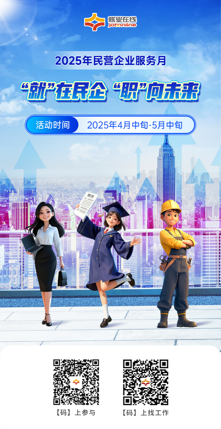 為支持民營經(jīng)濟(jì)發(fā)展,促進(jìn)高質(zhì)量充分就業(yè),按照人力資源社會(huì)保障部等6部門關(guān)于開展2025年民營企業(yè)服務(wù)月活動(dòng)安排,“就業(yè)在線”平臺(tái)開展2025年民營企業(yè)服務(wù)月線上招聘求職服務(wù)活動(dòng),助力民營企業(yè)招聘用工和廣大勞動(dòng)者求職就業(yè)。