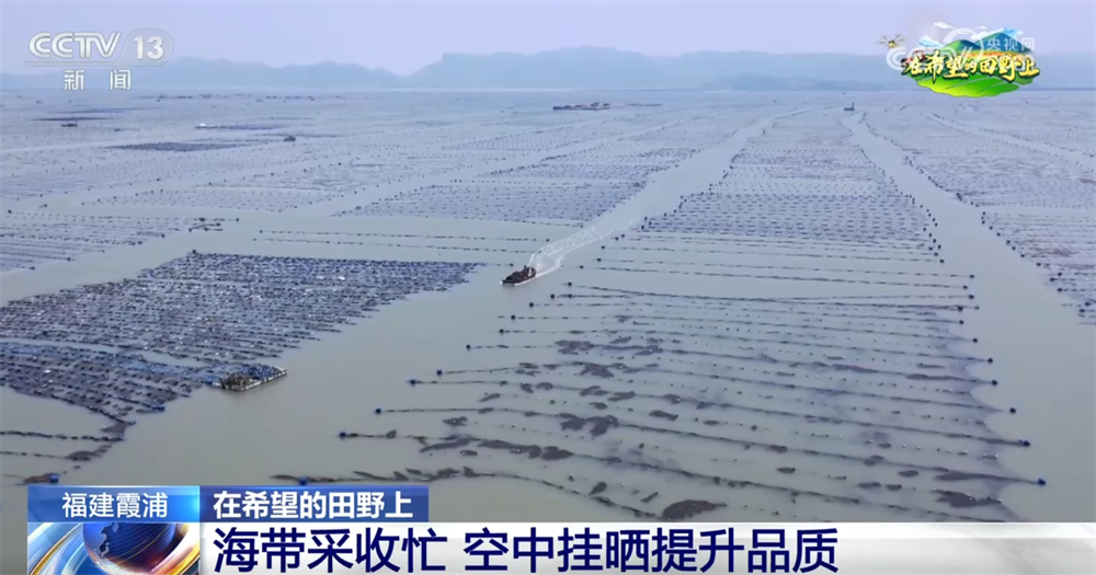 福建寧德市霞浦縣被譽(yù)為“中國(guó)海帶之鄉(xiāng)”,是我國(guó)海帶的主產(chǎn)區(qū)之一。這幾天,當(dāng)?shù)氐?5萬(wàn)畝海帶迎來(lái)豐收,養(yǎng)殖戶們忙著將成品海帶收獲上岸,再運(yùn)送到晾曬場(chǎng)晾曬,形成了獨(dú)特的“空中曬場(chǎng)”。