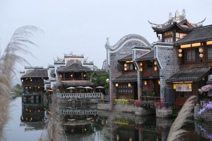 傍晚時分,李莊古鎮(zhèn)月亮田華燈初上(4月23日攝)。新華社記者 張雅雯 攝