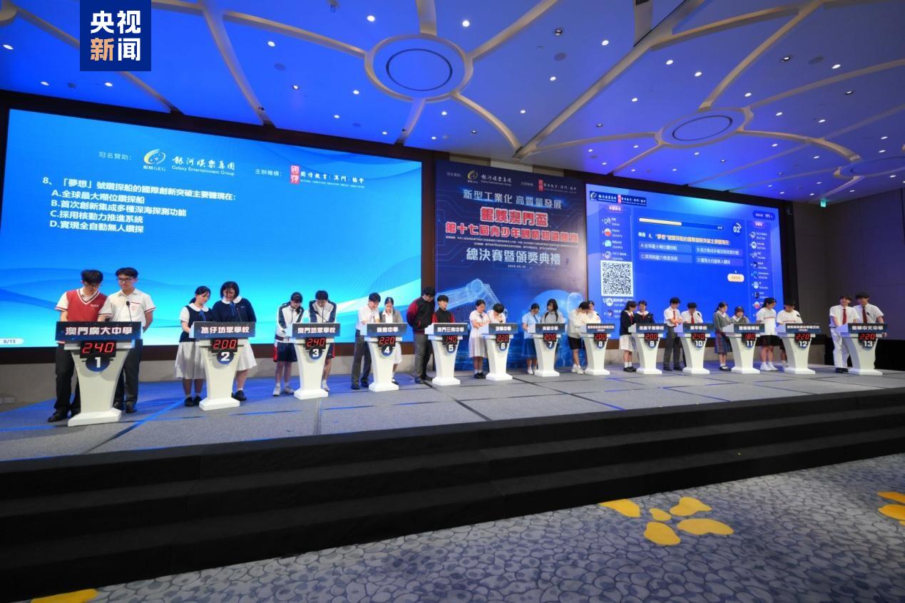 澳門(mén)第十七屆青少年國(guó)情知識(shí)競(jìng)賽總決賽暨頒獎(jiǎng)典禮15日舉行。本屆賽事共吸引了澳門(mén)26所中學(xué)和8所高等院校逾15000名學(xué)生踴躍參與,規(guī)模再創(chuàng)新高。培道中學(xué)、鏡平學(xué)校和澳門(mén)理工大學(xué)分別奪得兩個(gè)中學(xué)組和一個(gè)大學(xué)組冠軍。