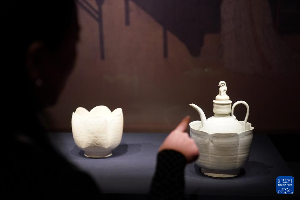 繼續(xù)前行,便來(lái)到“跨越文化——胡食風(fēng)尚”單元。故宮博物院藏唐代鳳首壺與舊金山亞洲藝術(shù)博物館藏鳳首壺“并肩而立”,它們獨(dú)特的把手與流口設(shè)計(jì),仿佛訴說(shuō)著胡人傾注式倒酒習(xí)俗對(duì)中原的影響。