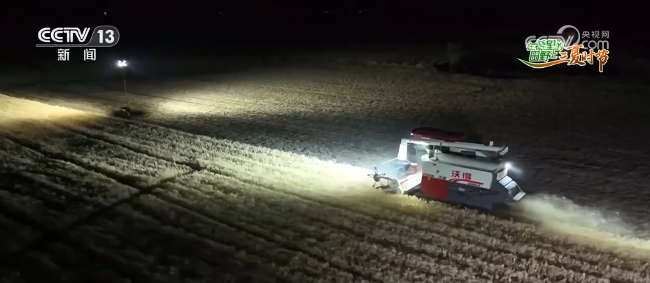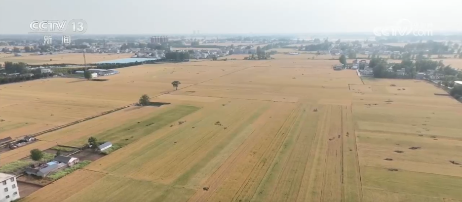 在河南南陽鄧州構(gòu)林鎮(zhèn)這處麥田,金黃的麥浪層層鋪開,麥穗 在陽光下熠熠生輝。4臺聯(lián)合收割機(jī)開足馬力穿梭在麥田間,伴隨著機(jī)器的轟鳴聲,成熟的小麥被快速收割、脫粒,金黃的麥粒從收割機(jī)的出糧口傾瀉而出,裝入一旁的運(yùn)輸車輛。