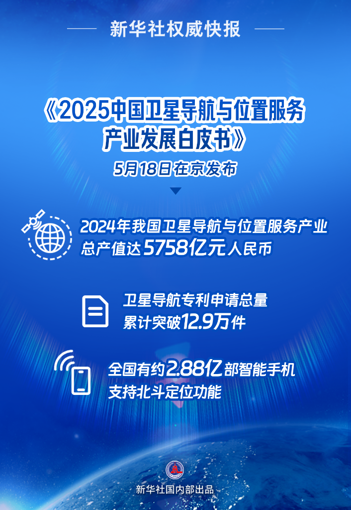 5月18日在京發(fā)布的《2025中國衛(wèi)星導(dǎo)航與位置服務(wù)產(chǎn)業(yè)發(fā)展白皮書》顯示,2024年我國衛(wèi)星導(dǎo)航與位置服務(wù)產(chǎn)業(yè)總產(chǎn)值達(dá)5758億元人民幣,同比增長7.39%;衛(wèi)星導(dǎo)航專利申請總量累計(jì)突破12.9萬件,繼續(xù)保持全球領(lǐng)先……
