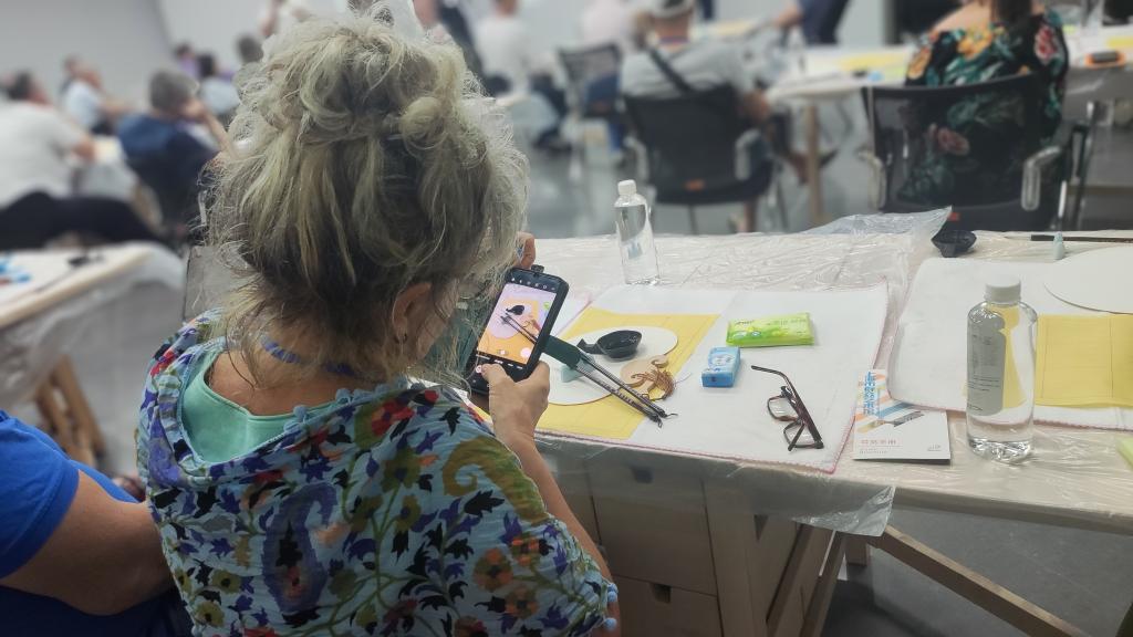 在上海市群眾藝術(shù)館,近60名波蘭團(tuán)隊(duì)游客跟隨書法指導(dǎo)老師了解中國(guó)“文房四寶”的制作方法,學(xué)習(xí)用毛筆書寫漢字,還參觀了最新攝影展及非遺市集,了解上海各級(jí)文化館服務(wù)內(nèi)容、工作職責(zé)。