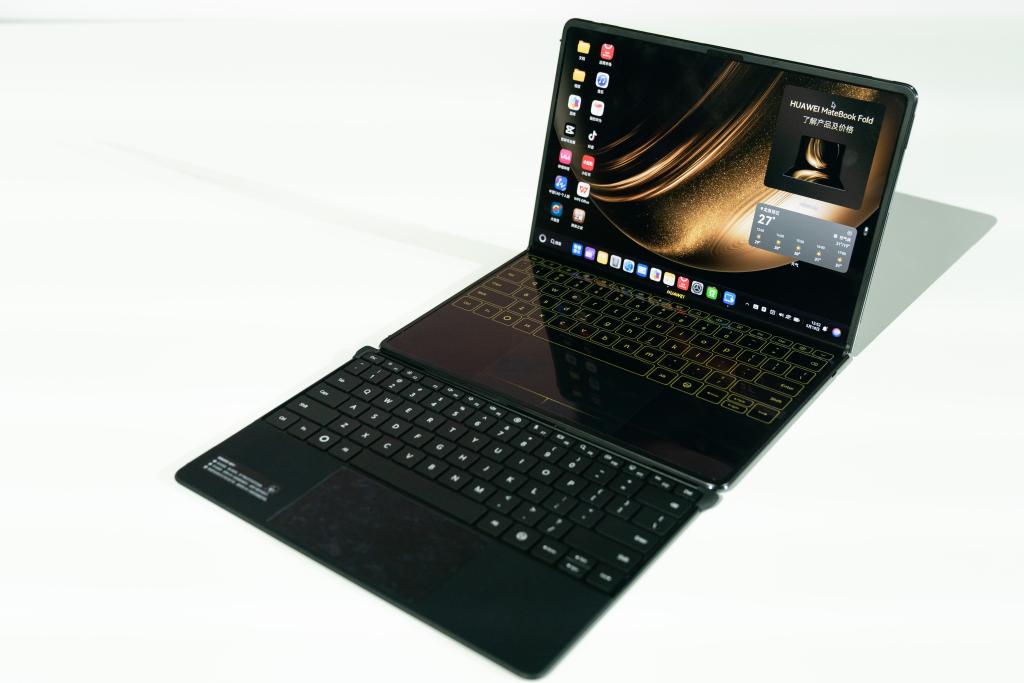 圖為5月19日發(fā)布的HUAWEI MateBook Fold非凡大師實(shí)體鍵盤與虛擬鍵盤。新華社記者 胥冰潔 攝
