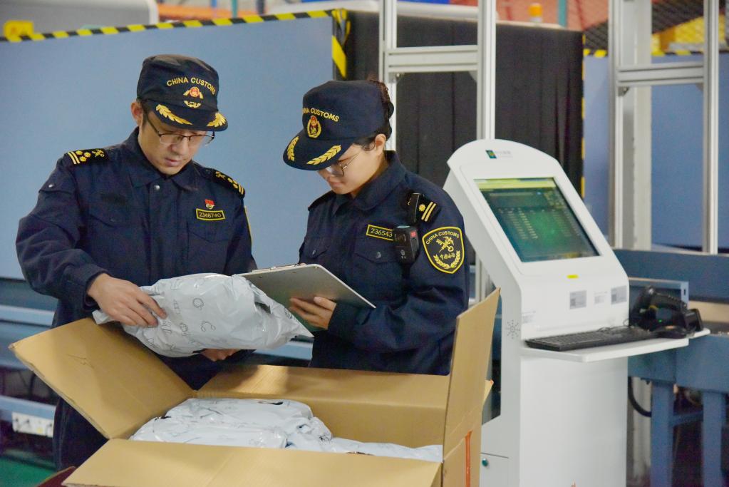 無錫海關關員對運往墨西哥的跨境電商商品進行查驗(2024年12月26日攝)。新華社發(fā)