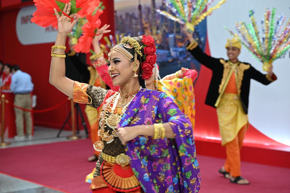 5月27日,馬來西亞參展人員在展會(huì)現(xiàn)場(chǎng)為觀眾帶來傳統(tǒng)舞蹈表演。新華社記者 陳愛平 攝
