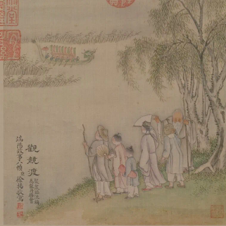 △《觀競渡》,題:“聚眾臨流稱為龍舟勝會。”