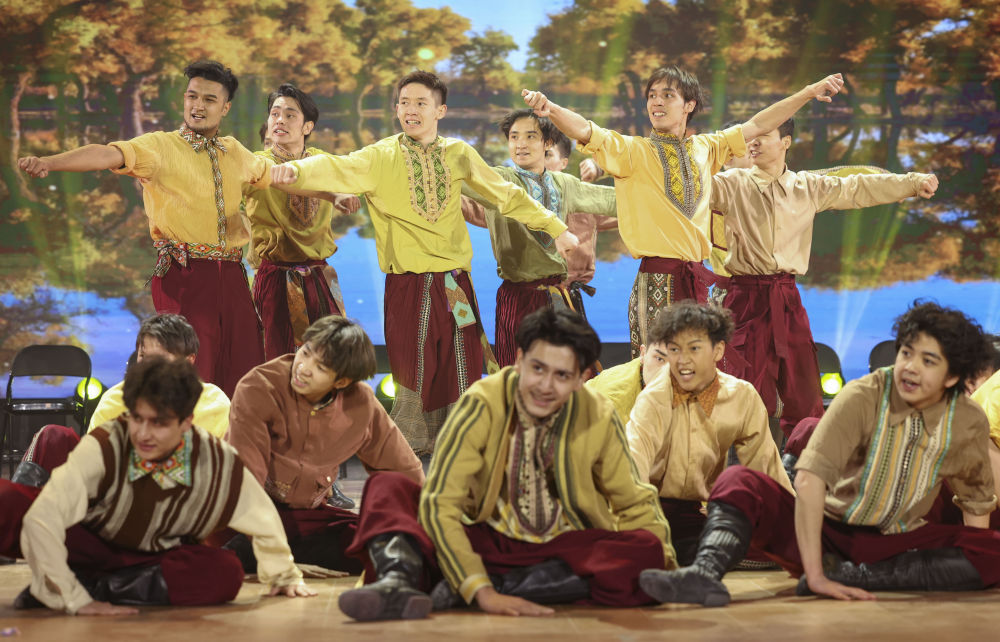 新疆藝術(shù)學(xué)院學(xué)生表演舞蹈《陽(yáng)光下的麥蓋提》(2023年3月20日攝)。新華社記者 胡虎虎 攝