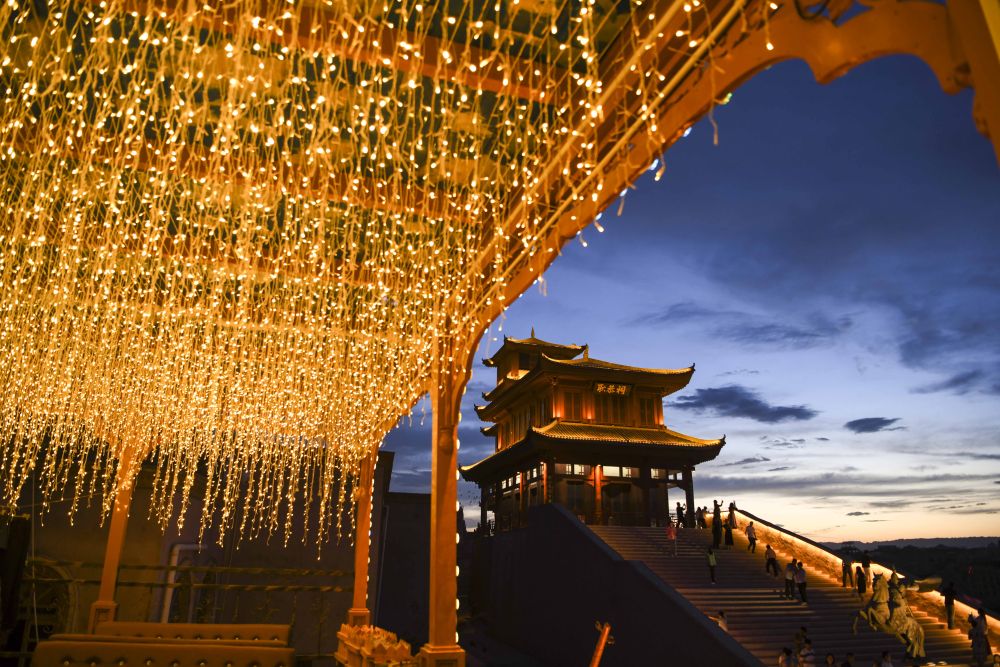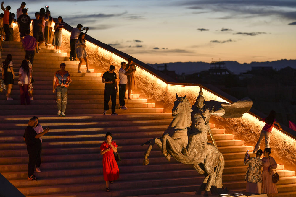 人們?cè)谛陆κ彩斜P橐城景區(qū)內(nèi)游玩(2023年6月14日攝)。新華社記者 胡虎虎 攝