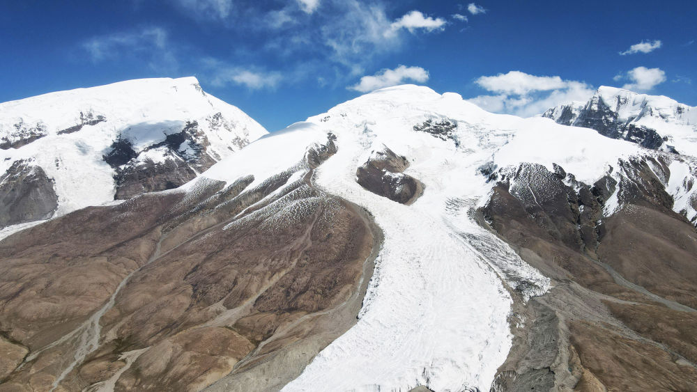 這是在新疆塔什庫(kù)爾干塔吉克自治縣慕士塔格冰川公園拍攝的冰川景觀(2023年9月6日攝,無(wú)人機(jī)照片)。新華社記者 金皓原 攝