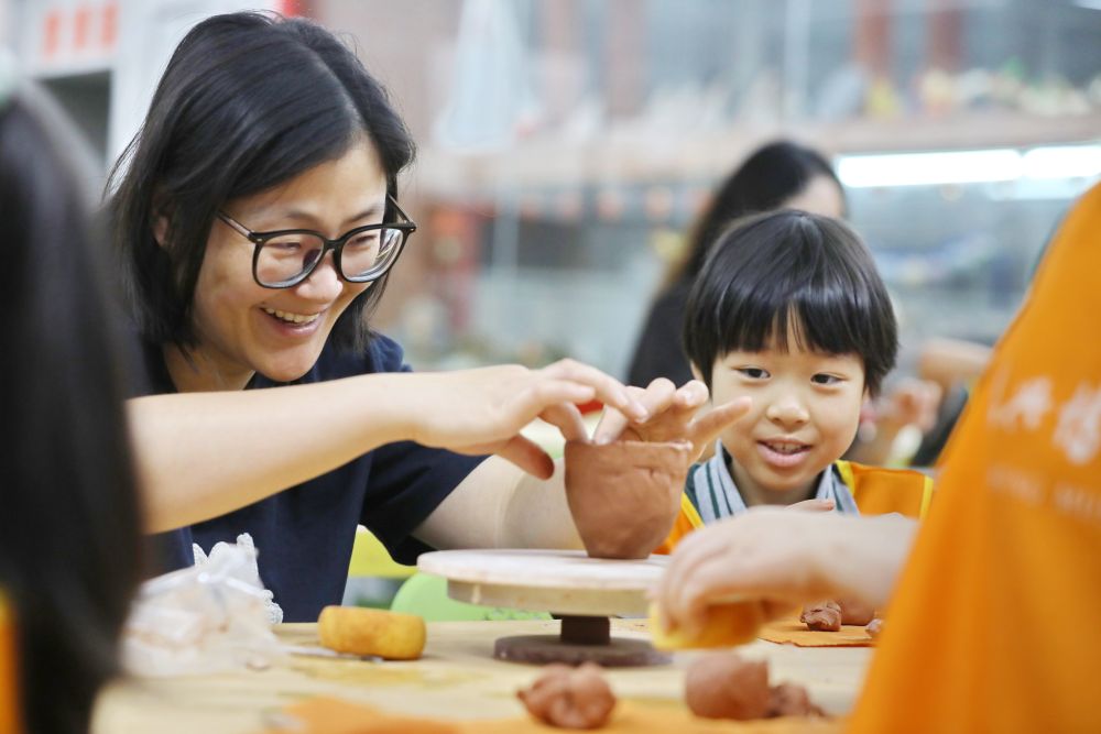 圖為在浙江省嘉興博物館,南湖實(shí)驗(yàn)學(xué)校萬(wàn)興校區(qū)一年級(jí)小學(xué)生和家長(zhǎng)一起參加“泥塑悟非遺,親子迎端午”泥塑制作活動(dòng)。新華社發(fā)(金鵬 攝)