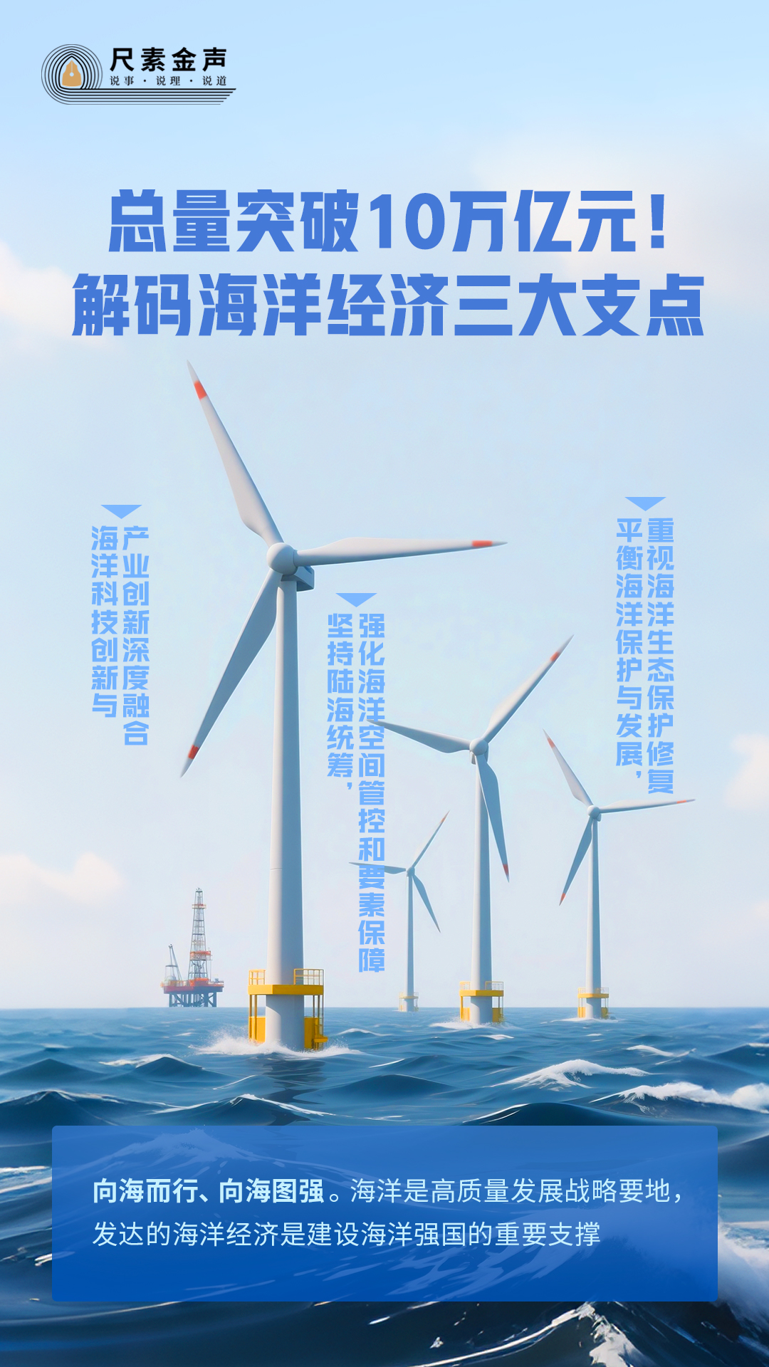 海風(fēng)陣陣吹動白色風(fēng)機,用“綠電”點亮萬家燈火;海水波濤翻滾、潮起潮落,將汩汩動能送至千家萬戶;“藍色糧倉”日漸充實,“中國飯碗”愈加豐富;深海深淵有數(shù)不盡的礦產(chǎn)、油氣和生物基因資源亟待開發(fā)……從單純的魚鹽之利、舟楫之便,到如今向大海要食物、要綠電、要淡水,海洋經(jīng)濟正成為拉動國民經(jīng)濟增長的重要引擎。