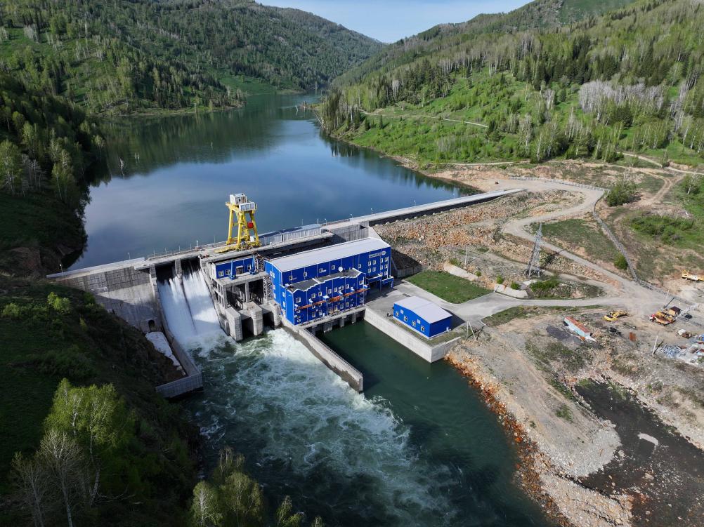 這是5月8日在哈薩克斯坦東哈州拍攝的圖爾古孫水電站(無人機照片)。 新華社記者李任滋攝