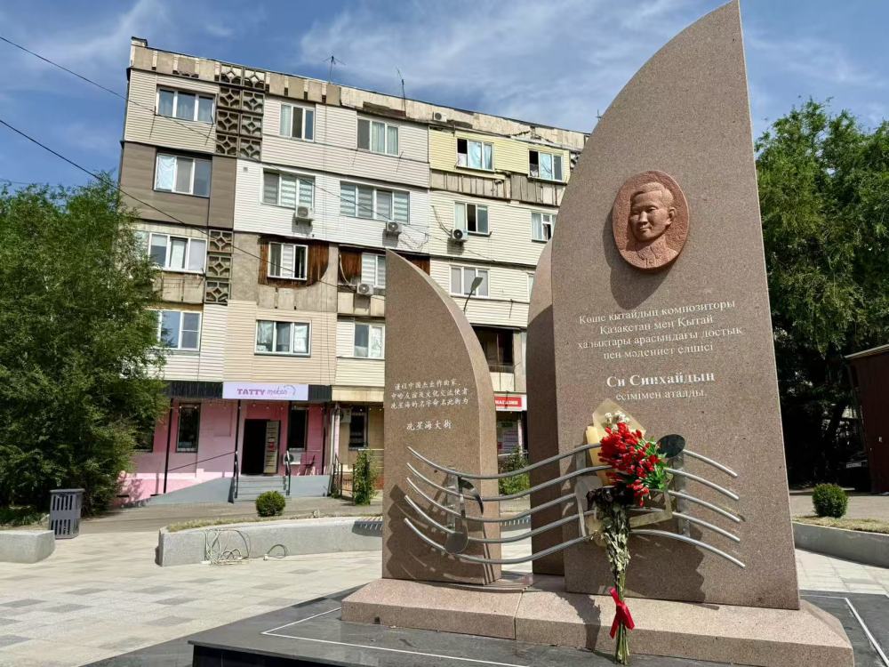 6月10日,在阿拉木圖拍攝的冼星海紀(jì)念碑。新華社記者 鄭開(kāi)君 攝