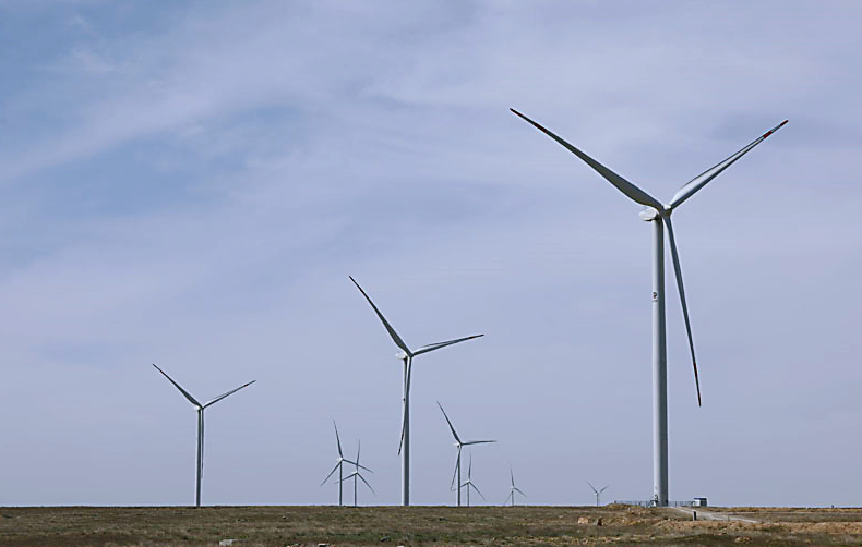 哈薩克斯坦札納塔斯拍攝的札納塔斯100兆瓦風(fēng)電項(xiàng)目風(fēng)機(jī)。圖片來(lái)源:新華社