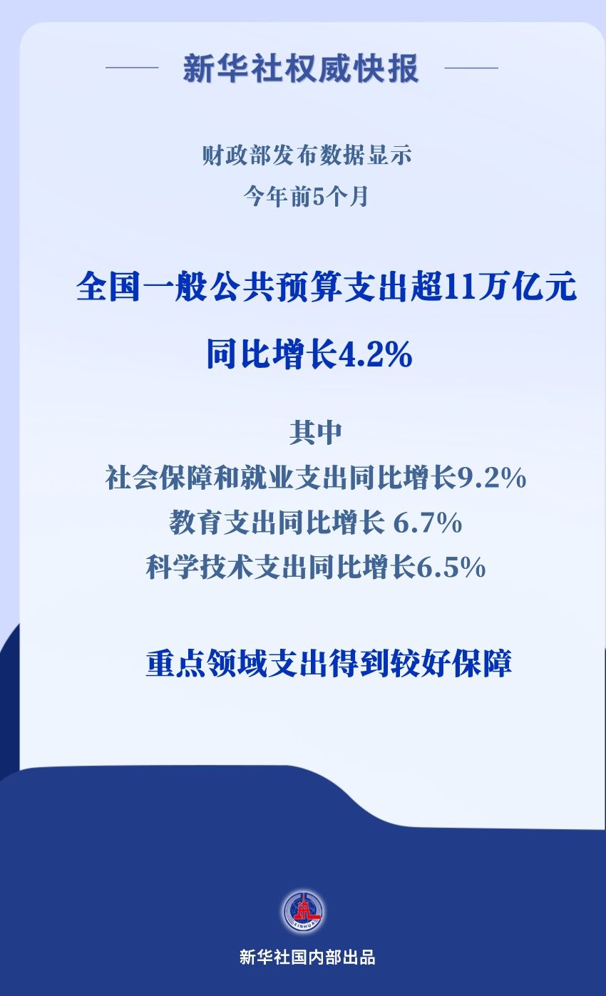數(shù)據(jù)顯示,全國一般公共預(yù)算支出持續(xù)增長,前5個(gè)月達(dá)112953億元,同比增長4.2%。各級財(cái)政部門加大支出強(qiáng)度,優(yōu)化支出結(jié)構(gòu),持續(xù)加強(qiáng)對重點(diǎn)領(lǐng)域的支出保障。