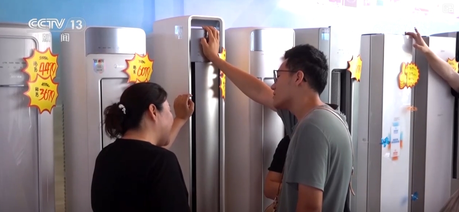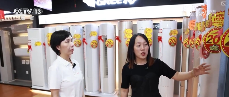 店主介紹,當(dāng)前消費(fèi)者“以舊換新”需求旺盛。6月份以來(lái),店內(nèi)銷售量環(huán)比增長(zhǎng)了33%,空調(diào)、冰箱等清涼家電成為消費(fèi)主力。