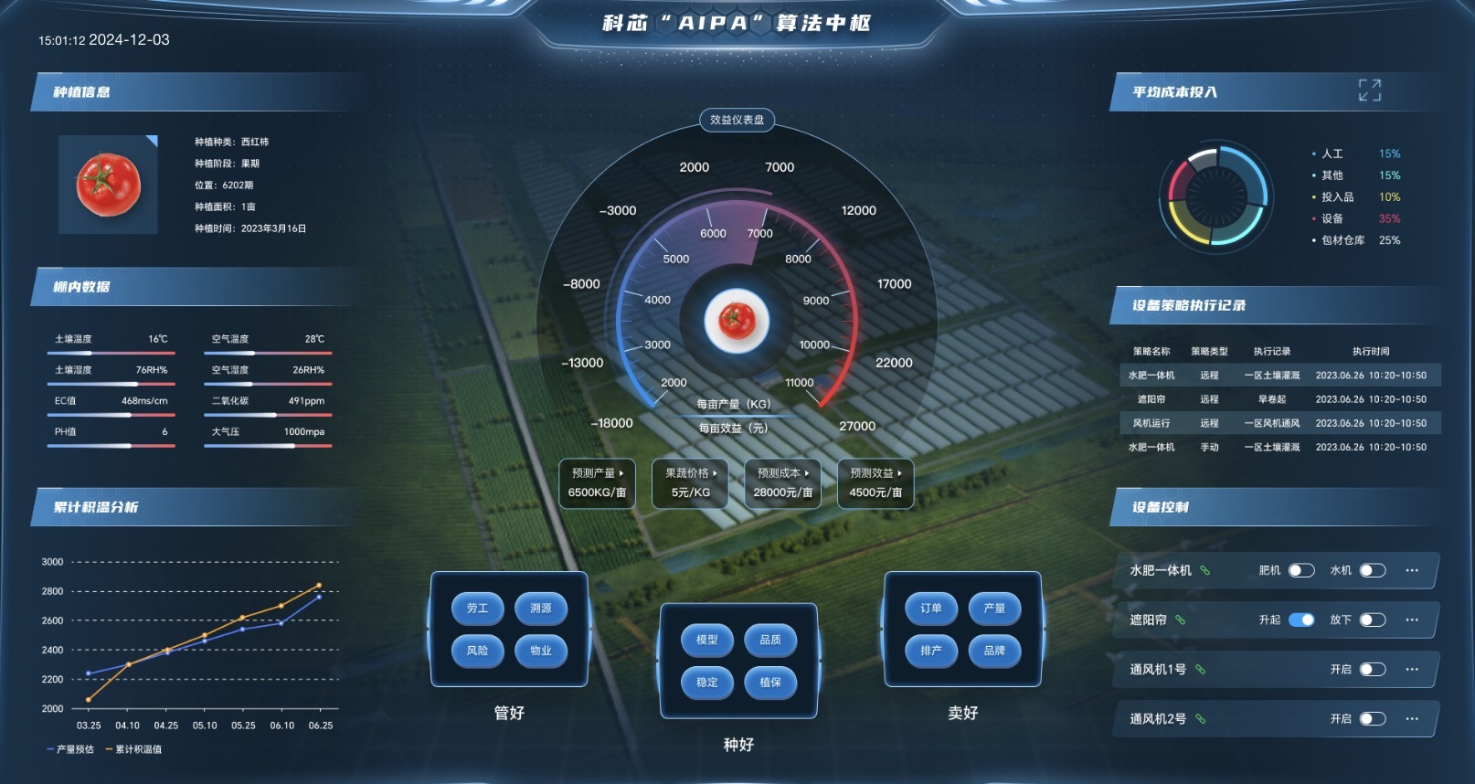 科芯自主研發(fā)的AIPA系統(tǒng),整合了多項(xiàng)新興技術(shù),能夠精準(zhǔn)描述作物的生長(zhǎng)動(dòng)態(tài),并作出生產(chǎn)力預(yù)測(cè)與效益評(píng)估。胡建龍形象地比喻:“這就像是給農(nóng)作物配備了一位24小時(shí)在線的‘智能管家’,它能根據(jù)作物的需求,自動(dòng)調(diào)整灌溉、施肥、遮陽等操作,確保作物在最佳環(huán)境中生長(zhǎng)。”