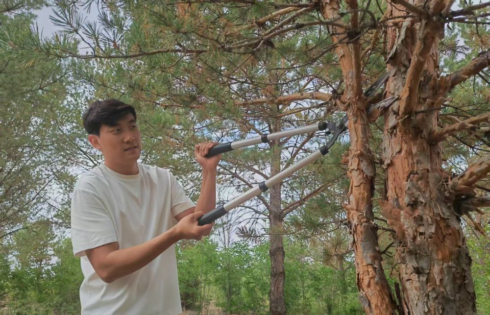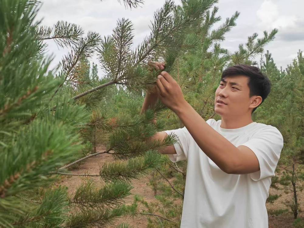 2017年,在爺爺?shù)膸ьI(lǐng)下,石健陽正式投身植綠事業(yè)?!斑^去沙害嚴重,老一輩治沙人最迫切的是要定住風沙,讓地面先綠起來,所以當時的樹種主要是生長快的楊樹?!笔£栒f,“幾十年過去,楊樹林老化嚴重,出現(xiàn)大面積枯死的情況。我們現(xiàn)在陸續(xù)對老化的林地進行樹種更換,補種四季常青、生命周期更長的樟子松,目前已經(jīng)補種了5萬畝?!?/p>