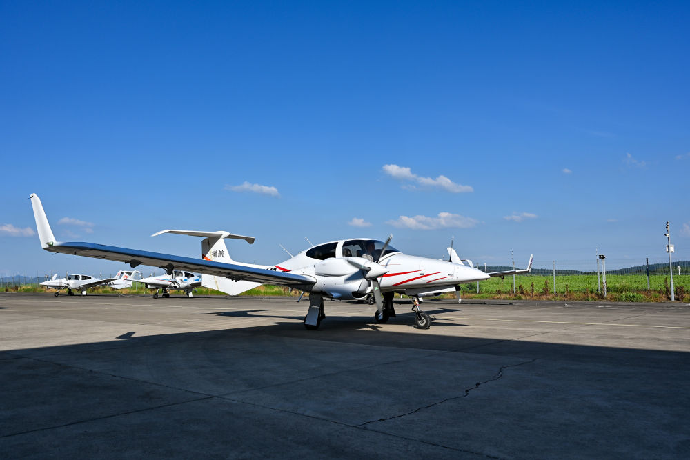 7月3日,在安徽省蕪湖市灣沚區(qū)航空小鎮(zhèn),一架通航飛機(jī)準(zhǔn)備起飛。新華社記者 張鋮 攝
