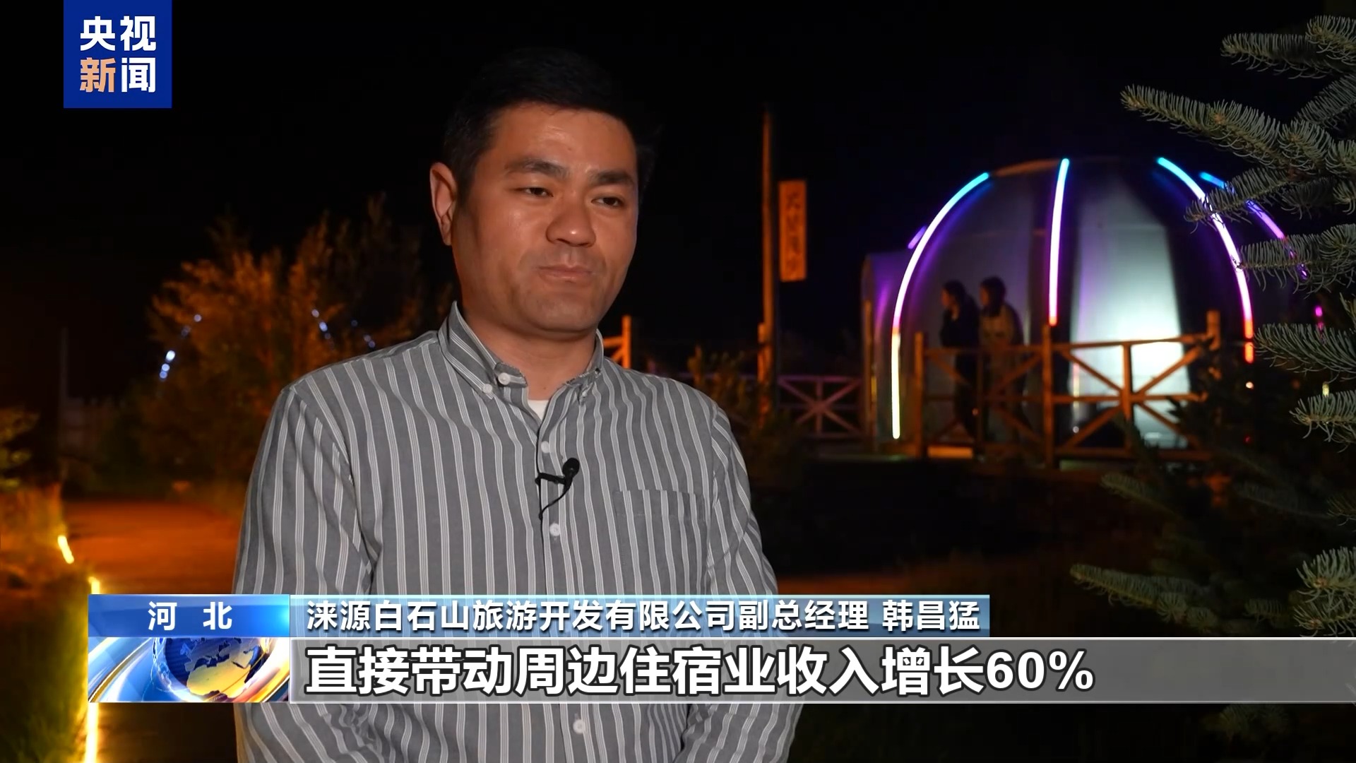 淶源白石山旅游開(kāi)發(fā)有限公司副總經(jīng)理 韓昌猛:過(guò)夜游客占比從過(guò)去的10%增長(zhǎng)至35%,直接帶動(dòng)周邊住宿業(yè)收入增長(zhǎng)60%。
