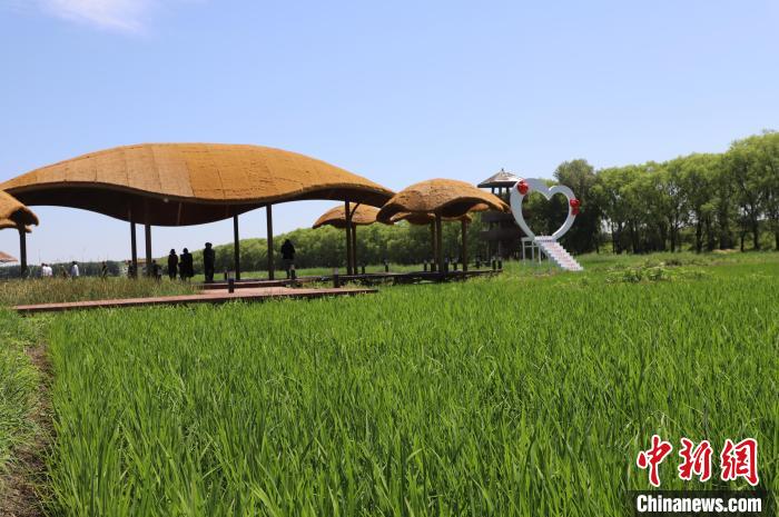 在“稻夢空間”,300多畝的水稻田成為網(wǎng)紅拍照打卡點;稻米水系沿岸的特色民宿街上,游客們體驗手工制茶。
